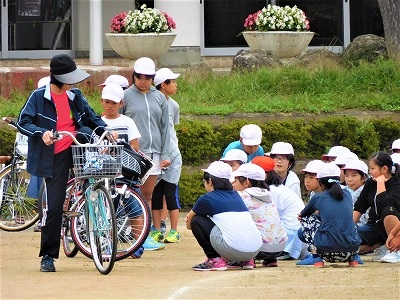 そこで,今回は「安全な歩行」と,「安全な自転車走行」について学びました。講師の方は,郡山北警察署本宮分庁舎の警察官と,交通指導専門員です。お忙しい中,子どもたちの「いのち」を守るためにご協力を賜りました。感謝申し上げます。