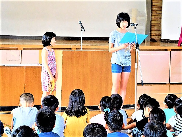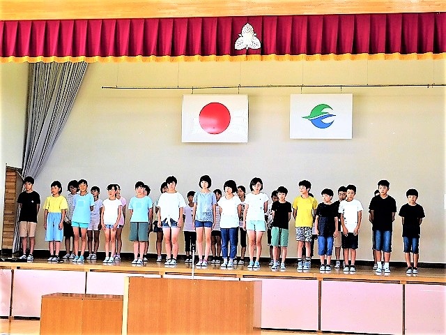 7月20日(金),第1学期終業式を行いました。糠沢っ子が活躍した場面や活動,日々の練習や努力の姿,思いやりや仲良しの糠沢っ子の様子など,素晴らしい姿を称賛しました。1学期を振り返ってという題名で,2年生と6年生の子どもが発表をしました。「学校が楽しいです!勉強を頑張りました!」,「鼓笛パレードや陸上大会,学校行事など6年生として模範となるよう頑張りました!」と,2名の糠沢っ子から発表がありました。素晴らしい発表と内容でした。