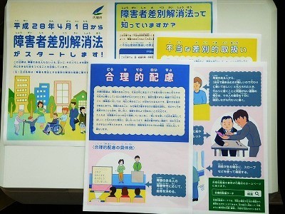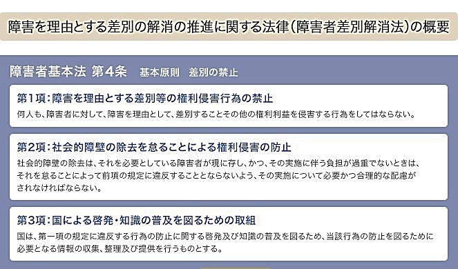 ※内閣府から発布されました「障がい者差別解消法」(平成28年4月1日施行)により,下記のような概要とパンフレットが発布されています。※ここでは,校長の判断で「障害」を「障がい」という表記にしています。