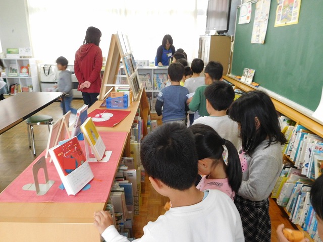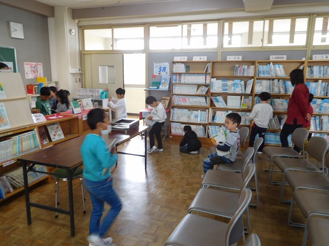 1年生の子どもたちは,「〇〇は,楽しそうな本だなあ!」とか,「〇〇ちゃん,この本,おもしろそうだよ。」など,生き生きとした表情で図書を選んでいました。