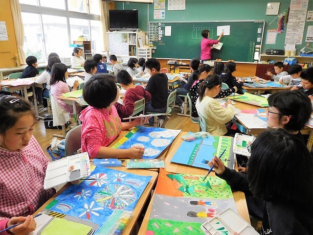 5月9日(水),朝から雨が降り,気温も低い今日ですが,朝一番(午前8時)に教室を訪問しました。どの教室でも,元気なあいさつや返事がありました。寒さを吹き飛ばすパワーを実感しました。しばらくして,3校時に各学年の教室や体育館を訪問しました。1年生は,図画工作の学習で「えのぐの使い方」を学んでいました。2年生は,図画工作で「粘土」による造形活動を進めていました。3年生は,図画工作で「ふわふわ」と触感を生かした工作を進めていました。4年生は,体育で「体づくり」の運動を行っていました。5年生は,図画工作で「景色や情景」を描いていました。6年生は,社会で「縄文から古墳時代」を学んでいました。