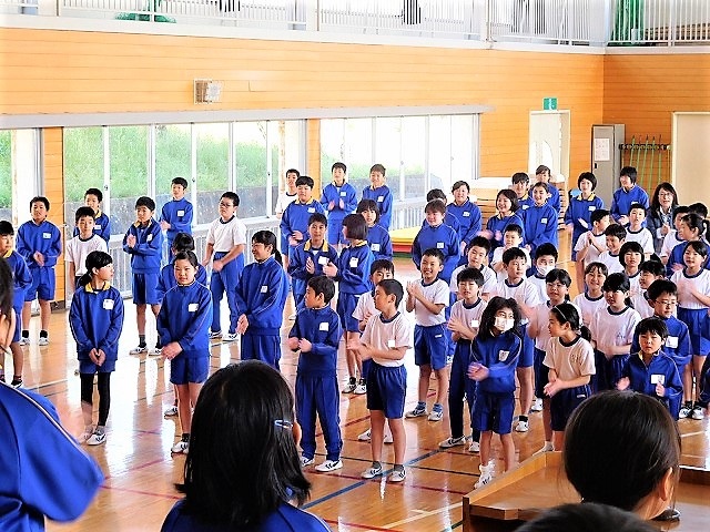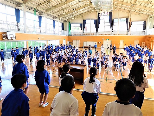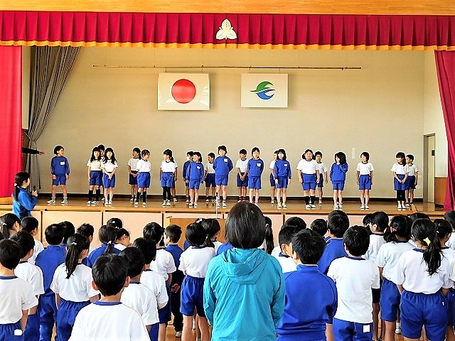 「全校集会」が予定通り行われました。内容は,表彰式,歌の練習,生徒指導でした。特に,歌の練習では「身体表現」を取り入れたオリジナルの表現でした。音楽担当の先生が,数年前に実践した「歌と身体表現」を基にして伝えました。全校児童で進める前に,3年生の子どもたちが練習をしていましたので、3年生がステージに登壇し,身体表現と歌を披露しました。3年生の身体表現を参考にしながら,1年生から6年生,先生方も歌と身体表現にチャレンジしていました。素晴らしい表現活動でした。これこそ「糠沢小のよさ」です。