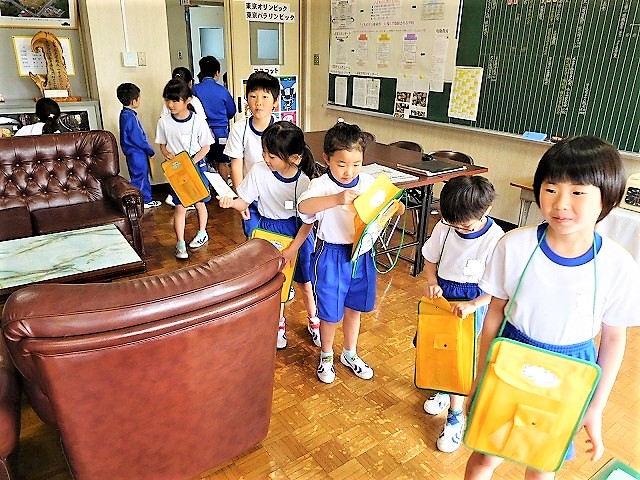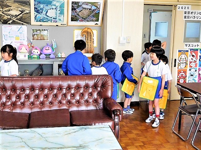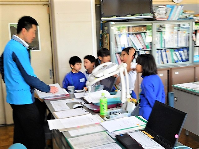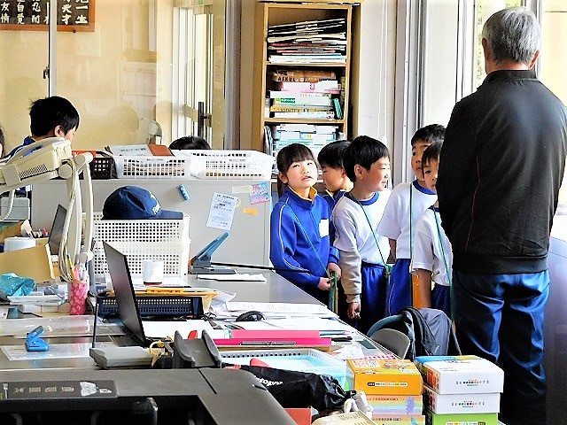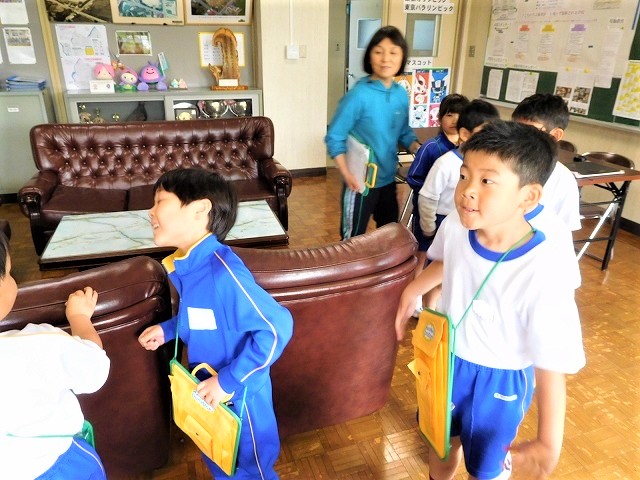 校長室には,「入ったことがありません。」という子どもたちがほとんどでした。子どもたちが自己紹介の後,校長室内を探検しました。その後,子どもたちからの質問に回答しました。「校長先生は,どんな仕事をしているのですか?」「この金庫?の中には何が入っていますか?」「校長先生は,どんな食べ物が好きですか?」など,色々な質問がありました。