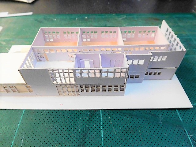 ★校舎の一部ができました。1階,2階,3階とそれぞれ分解ができます。教室等も見られます。今後,体育館,西校舎の製作に入ります。