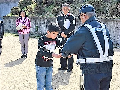 これらのねらいを達成できるよう,第1回交通教室を進めました。まず,校長から「いのち」を守るための「学ぶ場と機会」として,交通教室にて伝えました。次に,家庭の交通安全推進委員の委嘱状を「本宮分駐署員」の方から代表児童へ交付しました。代表児童(6年)から推進員の約束を読み上げてもらい,交通安全に努める誓いを行いました。さらに,本宮分駐署員さんから,交通安全についてお話がありました。今回,現場指導を進めるに当たり,「地域ボランティア」の皆様方に大変お世話になりました。感謝申し上げます。その後,通学班ごとに教員,ボランティアの皆さんと共に,安全な歩行を学びました。