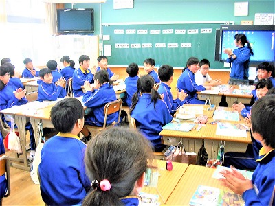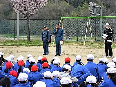 続きまして,南消防署員の方より,「避難が大変よくできました。」と称賛のお言葉を頂きました。これも,素晴らしいことです。各学級での事前指導の成果です。「いざ」という時に,安全な行動ができるよう今後も学習を積み重ねていきます。