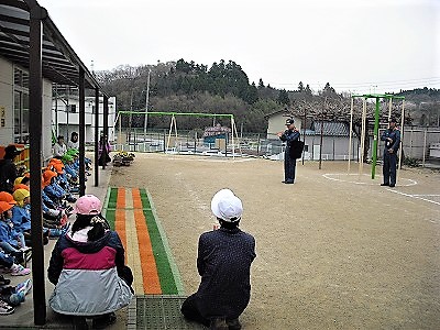 小学校の後,南消防署員の方が糠沢幼稚園にて「水消火器による消火活動」に関わるご指導を行いました。園児たちも消火訓練の様子を真剣に見学していました。