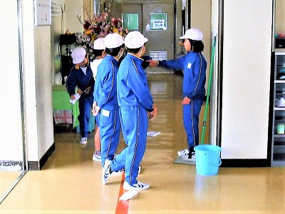 今週から,縦割り班による清掃活動(まだ,1年生は参加しません)がスタートしました。新年度になり,清掃班の班長さんの元,各自が分担して清掃個所や方法を確認しながら,「糠沢小をきれにしよう」という目標にて,どの場所でも熱心に無言で進めていました。