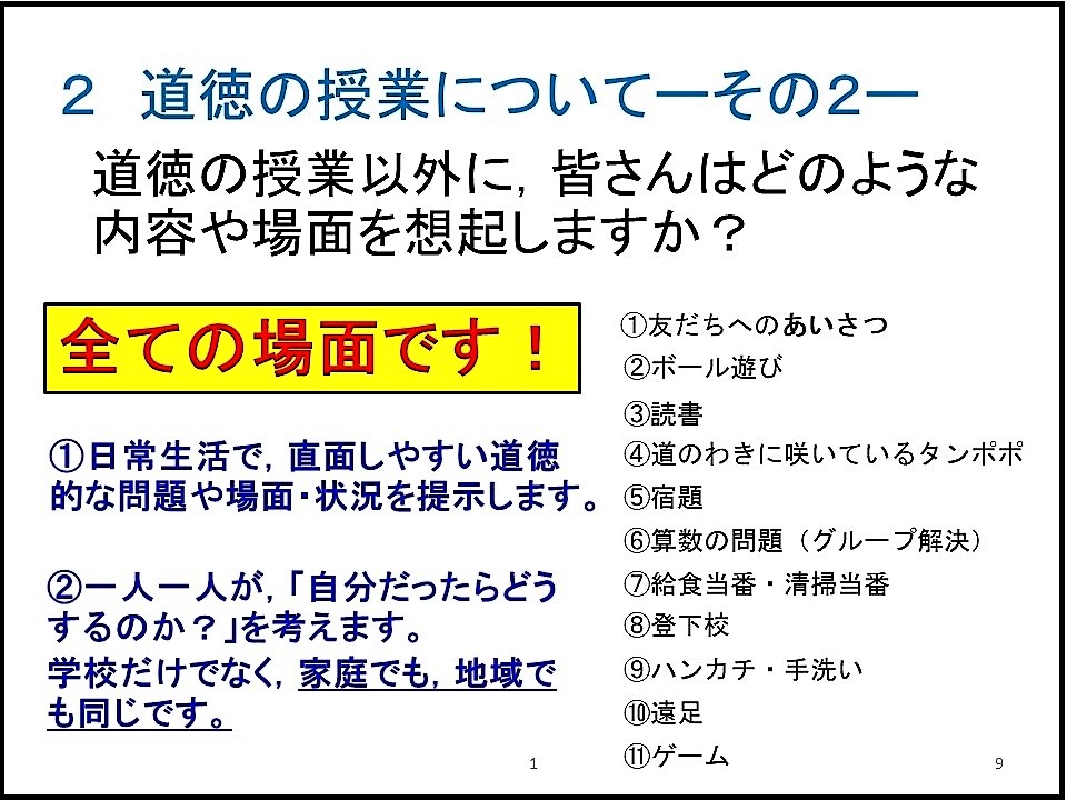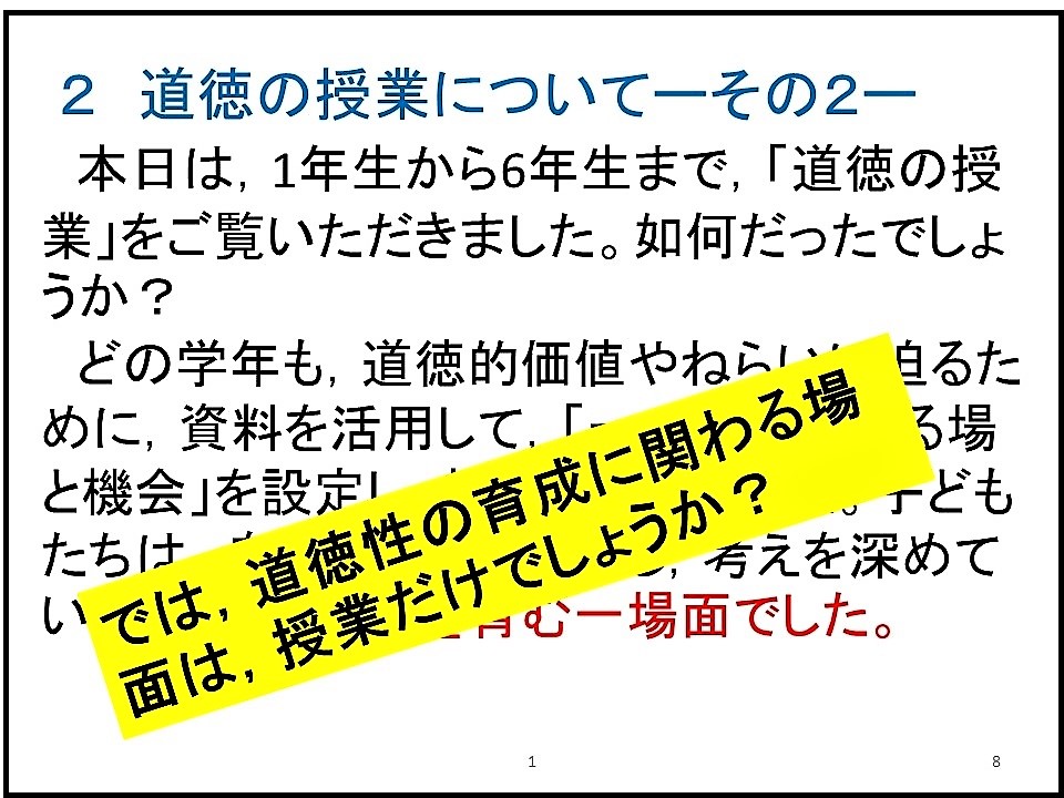 さらに,授業公開後には,校長講話としまして「これからの道徳教育―その2―」