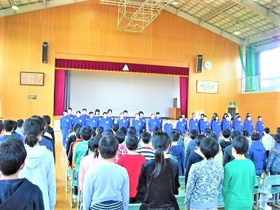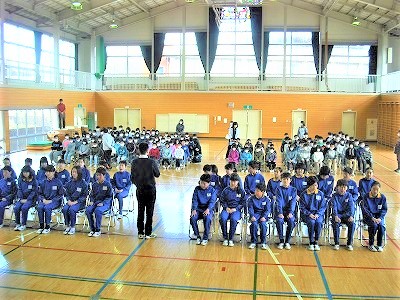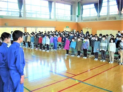 初めは,慣れないこともあり合わない場面や繰り返す場面が見られましたが,卒業行式の担当者から,アドバイスを頂きながら練習を進めた結果,第1回目の内容はよくできました。以前にもご紹介しました通り,毎日,糠沢っ子の姿を拝見しますと,登・下校時,授業中,休み時間,給食,清掃活動・委員会活動など,様々な場面にて「生き生きと学ぶ姿」を見ます。それらの成長が,卒業式の練習等でも表現されると感じました。今までの「学ぶ態度・学ぶ力・学んだ力・生かす力」を活用し,1年生から6年生までの子どもたちが「成長した姿」として披露する場と機会が,「修了式や卒業式」です。第1回の姿から,「ここに!糠沢っ子あり!」という言葉が最適ではないでしょうか。第2回目の練習でも,糠沢っ子が「育んだ力」を発揮してほしいと願います。そのために,糠沢っ子を支える「学校の先生・職員」,「家庭の皆様」,「地域の皆様」,「関係者の皆様」で,進めて参りたいと改めて決意しました。