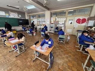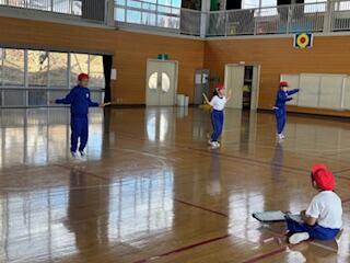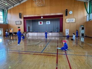1年生の体育科の授業では、「体つくりの運動あそび」の学習です。持久跳びの合格者が増えてきました。後ろ跳びも数多く跳べるようになってきています。記録会に向けてがんばっています。