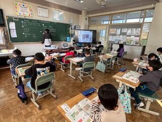 3年生の社会科の授業では、「店ではたらく人」の学習です。「お客さんの願いをかなえるために、どんな工夫をしているのかな?」スーパーの見学で学習したことをもとに考えます。