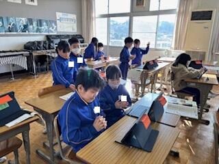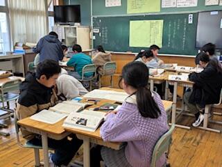 5年生の国語科の授業では、「想像力のスイッチを入れよう」の学習です。それぞれの段落を簡単にまとめ、内容をつかみます。グループで協力しながら取り組んでいます。