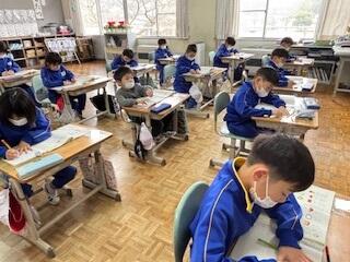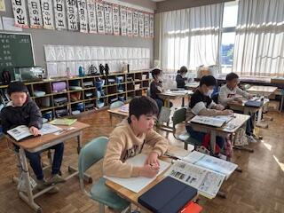 4年生の国語科の授業では、「漢字の広場」の学習です。1年間で202字の新しい漢字を学習する4年生。画数が多い漢字も増えてきました。何度も書いて正しく覚えます。