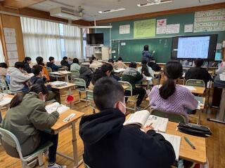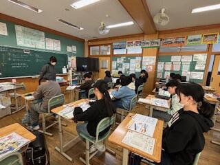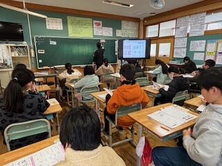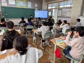 6年生の音楽科の授業では、「日本の音楽」の学習です。2学期に「箏」の学習をした6年生。「春の海」や「越天楽今様」を聴き、「箏」や「尺八」が奏でる日本の音楽について考えます。