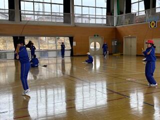 5年生の体育科の授業では、「体の動きを高める運動(なわを用いた運動)」の学習です。5分間持久跳びや交差跳び、二重跳びを繰り返し練習し、自己記録更新に向けて一生懸命取り組みます。