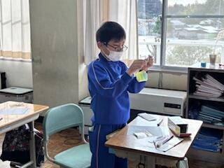 3年生の理科の授業では、「音のせいしつ」の学習です。「音が伝わるときに、音を伝える物はどうなっているのかな?」糸をつけたプラスチックコップを使って、実験します。