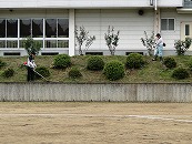 2日(土)、今年も、歴代PTA会長の方々と、現PTA会長・副会長による草刈り・草むしりが行われました。早朝6時、それぞれが自分の持ち場を理解しており、すぐに作業が始まりました。短時間のうちに学校周辺や花壇をきれいにしていただきました。誠にありがとうござました。
