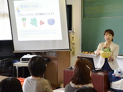 食育講話では、白沢中学校の関和先生をお招きして、バランスよく食べることの大切さや家庭での食育の在り方、親のかかわり方を教えていただきました。