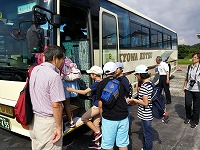 担任の先生方と一緒に、約束や決まりを再確認したり、持ち物等の確認をしたり、健康観察を行ったりして準備を整え、うれしそうにバスへと乗り込みました。
