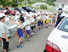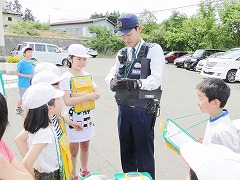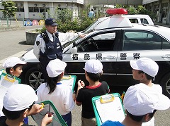 今4年生は、社会科「くらしを守る」の学習で、警察の仕事について勉強しています。そこで先日は、郡山北警察署本宮分庁舎や白沢駐在所の警察の方々をお迎えし、毎日どんな仕事をされているか、警察の仕事の様子をいろいろと学習しました。