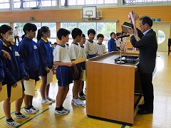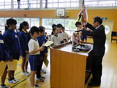 毎日の苦しい練習に耐え、頑張り抜いた子どもたちと、練習メニューを工夫し、一人一人の力を最大限に引き出そうと頑張っていただいた先生方に、自然と大きな拍手がわき起こる全校朝会となりました。