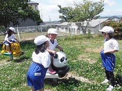 この日は、天候にも恵まれ、歩いて秋公園へ向かいました。いろいろな遊具があり、みんなと仲良く遊ぶことにより、約束やきまり、順番をゆずったり仲間に入れたりなど、協力して活動することと合わせて、思いやりの心にも気づいたようです。