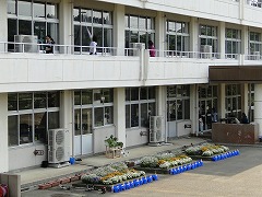 子どもたちは授業中であったこともあり、代表で校長先生に手渡されました。
