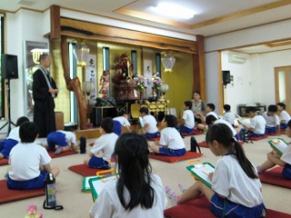 写真を見てのとおり、住職の方の話に真剣に耳を傾け、メモを取るなど、良い学習姿勢で素晴らしかったですし、等間隔に座布団を敷き、背筋をピーンと伸ばしで座禅をする姿は、とっても格好が良く、頼もしく思えました。
