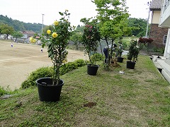 定番の赤やピンクのバラばかりでなく、黄色いバラなどもあり、色とりどりのたくさんのバラが咲く頃は、甘い香りに包まれ、本校のアピールポイントの一つになることと思います。