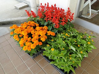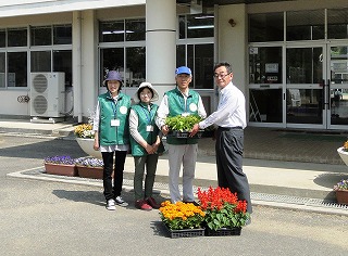 今の子どもたちに、命を大切にする気持ちや周りのみんなへの思いやりの心を育んでもらおうと、今年度も、人権擁護委員の方々が来校され、マリーゴールドやサルビアの花を届けてくださいました。