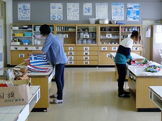6日(金)、運動会で使用した万国旗を、学校支援ボランティアの方々にアイロンがけをしていただきました。運動会前には、体育館のトイレ清掃をしていただき、今回はアイロンがけと、いつも協力的なお気持にうれしくなります。