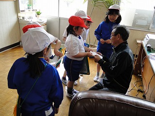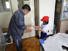 1年生の手作りの名刺、そして、名前と好きなもの(食べ物)をはっきりとお話しできていることが素晴らしかったです。また、2年生がお兄さんお姉さんらしく、1年生をリードして活動する姿がとても頼もしく思えて、うれしくなりました。