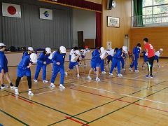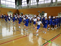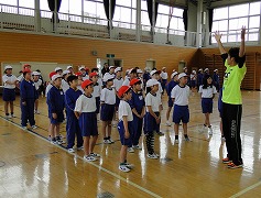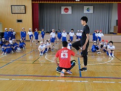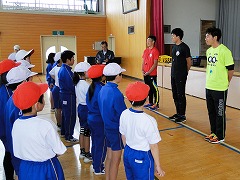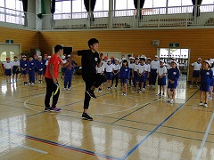 この日は雨のため、体育館の中での陸上教室となりましたが、現役アスリートの選手の動きに、目を輝かせながら体を動かし、心地よい汗を流していました。