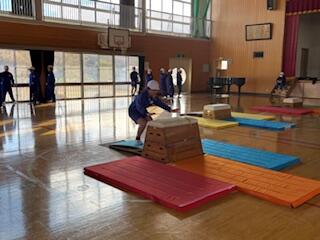 5年生の体育科の授業では、「跳び箱運動」の学習です。「どうすれば上手にできるかな?」4つのコースに分かれて、閉脚跳びに挑戦します。お互いにアドバイスする姿も素敵です。