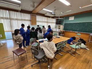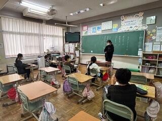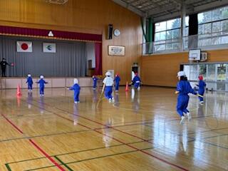 1年生の体育科の授業では、「体つくりの運動遊び(なわとび)」の学習です。準備運動や鬼ごっこで身体を温めた後、なわとびをします。1分間跳び続けられるようがんばっています。
