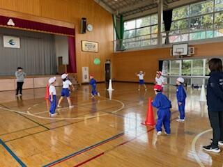 1年生の体育科の授業では、「ボール投げゲーム」の学習です。ソフトバレーボールを使って、紅白に分かれてドッジボールをします。ボールをキャッチして投げる動きがスムーズになってきました。