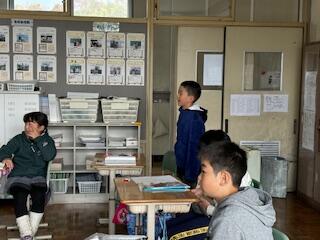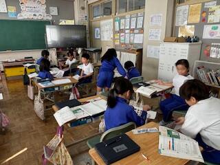 2年生の国語科の授業では、「思いうかべたことをもとに、お話をしょうかいしよう」の学習です。「みきのたからもの」を紹介する文を読み合って、友だちのいいところを発表します。