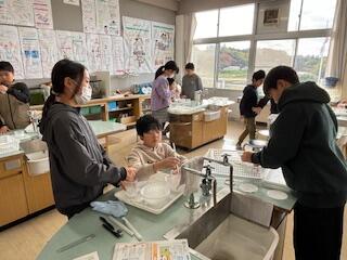 5年生の理科の授業では、「物のとけ方」の学習です。「水の温度によって、物のとけ方は変わるのかな?」お湯の入ったビーカーに食塩やミョウバンを入れて、とけ方を比べます。