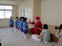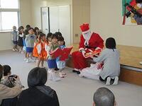 いるとサンタさんの登場。年少さんらしい驚きの表情や