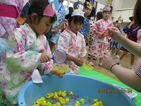 8月の誕生会では年長さんが紙人形のペープサートを使って「お話ごっこ」を見せてくれました。グループ毎に自分たちでお話を作り、ストーリーに沿って紙人形や背景、小道具などを準備して練習してきました。発表では自分の役割をしっかりとこなして、進めることができました。年少さんもお話を聞いて楽しんでいました。