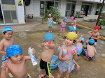 年長さんは、夏祭りを再現してのお店屋さんごっこや、小学校のプールを楽しみました。また、フッ化物洗口が来週から実施されるため、歯の大切さを教えていただいたり水でのブクブクの練習を行ったりしました。