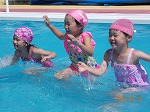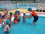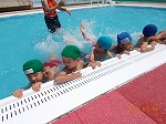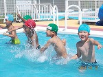 最初は水に抵抗を感じていた年少さんでしたが、次第に水の感触の虜になり、顔に水がかかるのも気にせずに楽しんでいました。年長さんは糠沢小学校のプールを借り、バタ足をしたり友達に手を引かれながら泳いだりと、初めての学校のプールを思い切り楽しむことができました。