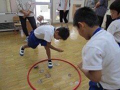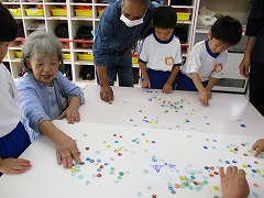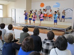おじいちゃんおばあちゃんに昔遊びを教えてもらったり、講師の先生を迎えてわらべうた教室でたくさんふれあい遊んだりしました。ミニ発表会では、全員での歌や、年少さんのダンス、年長さんのオペレッタを発表し、温かい拍手をいただきました。たくさんのおじいちゃんおばあちゃんにご参加いただきありがとうございました。