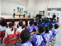 発表会の予行練習には、校長先生や1年生の皆さんも見に来てくれました。12月1日、発表会当日は沢山のおうちの