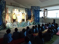 素敵な人形と不思議なお話しに子どもたちの目は舞台にくぎ付けです。本物に触れ