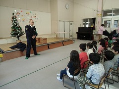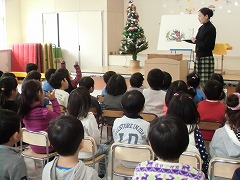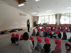 まず、白岩幼稚園のホールに集合し、会場園の4歳児担任の先生の進行により会を進めていただきました。会場園の園長先生のお話を聞き、各園自己紹介をしてから