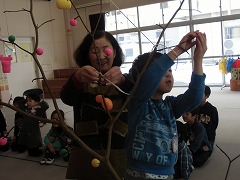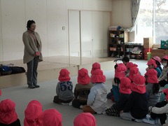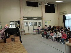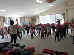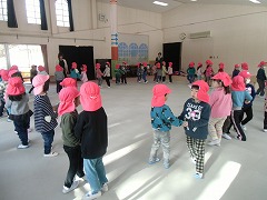 ・うた「ゆき」・体操「へそへそパワー」・わらべうた「いもじゃんこう」「お茶をのみにきてください」リズム「ホ!ホ!ホ!」を幼稚園の枠を超えてみんなで楽しみました。