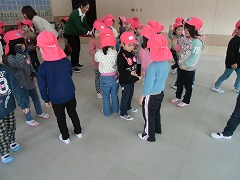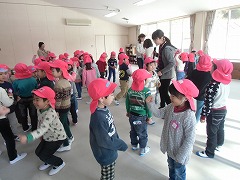 お友達を見つけるのが楽しそうでした。 みんなで大きな円になり「ホ!ホ!ホ!」や「お茶を飲みにきてください」を楽しく行いました。 楽しい時間は、あっという間に過ぎ
