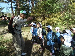 森林館の中ではカモシカや熊・リスなどのはくせいを見ました。熊の大きさに驚き顔木は明るいお日様を目指して大きくなります。